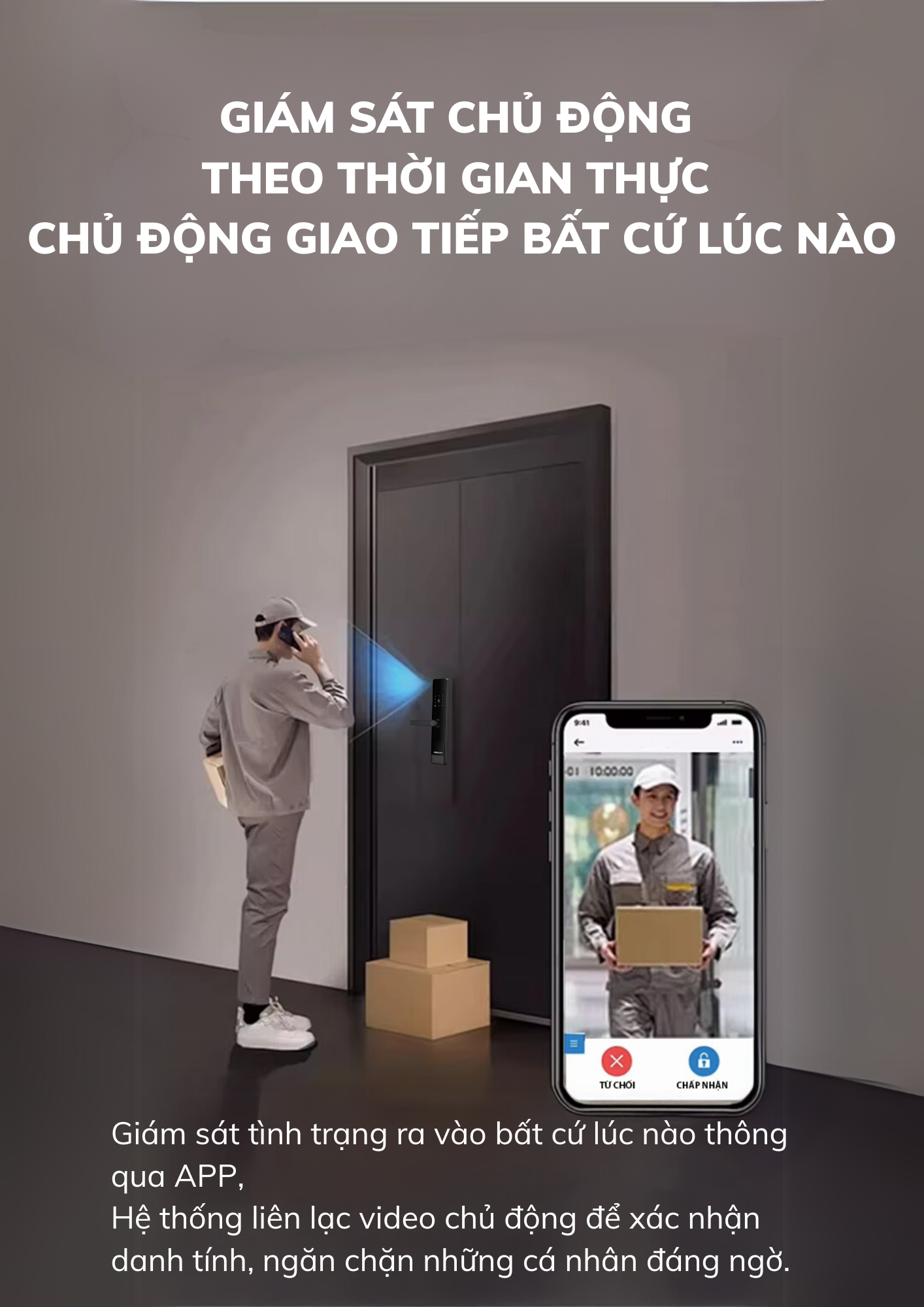 | Tính năng bảo mật | Cảnh báo mở khóa trái phép, cảnh báo đột nhập, vô hiệu hóa thẻ từ khi bị mất, mật khẩu ảo 32 ký tự |