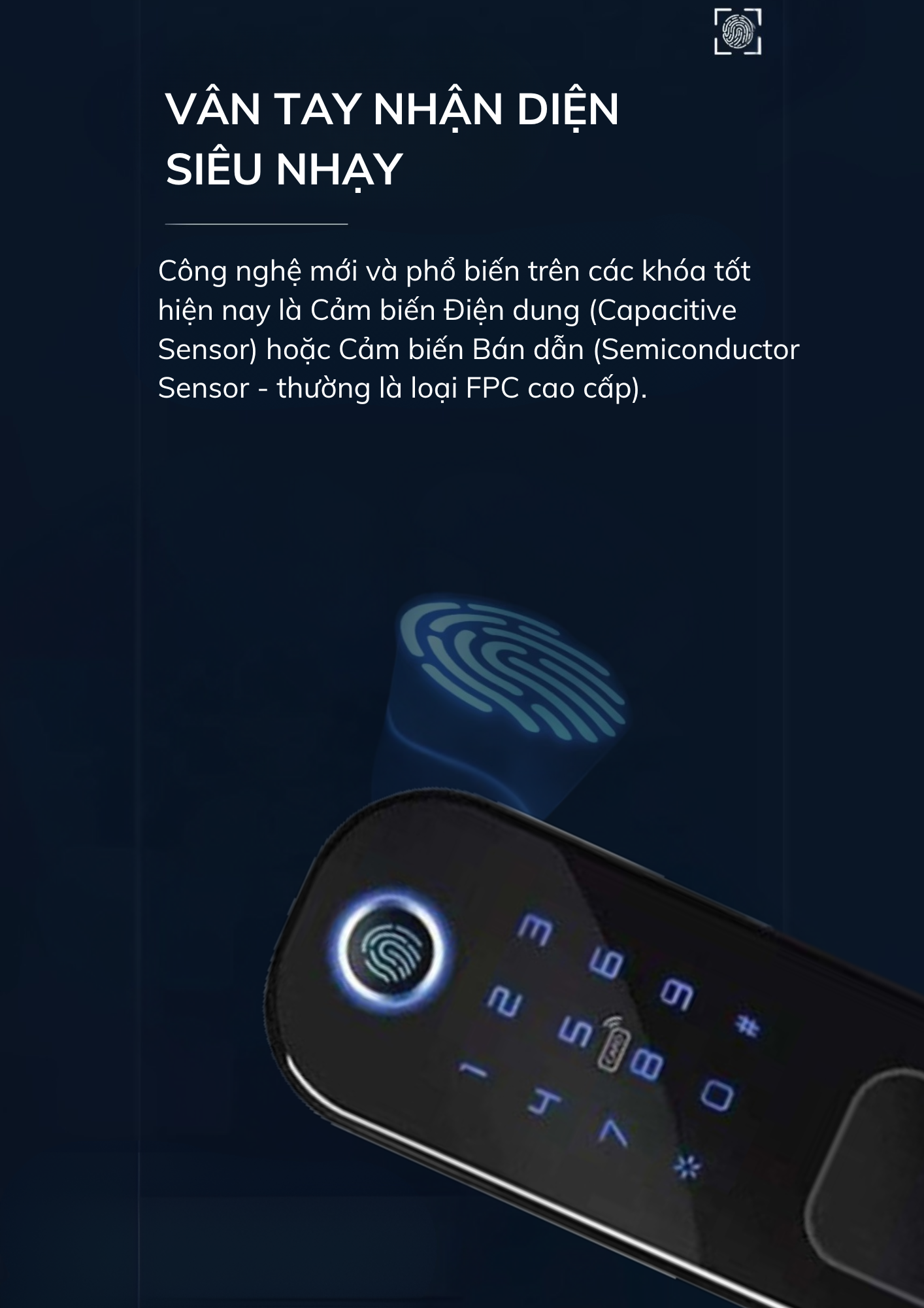 | Công nghệ mở khóa | Vân tay FPC Thụy Điển, mã số, thẻ từ, chìa cơ, App TT Lock (Wifi) |