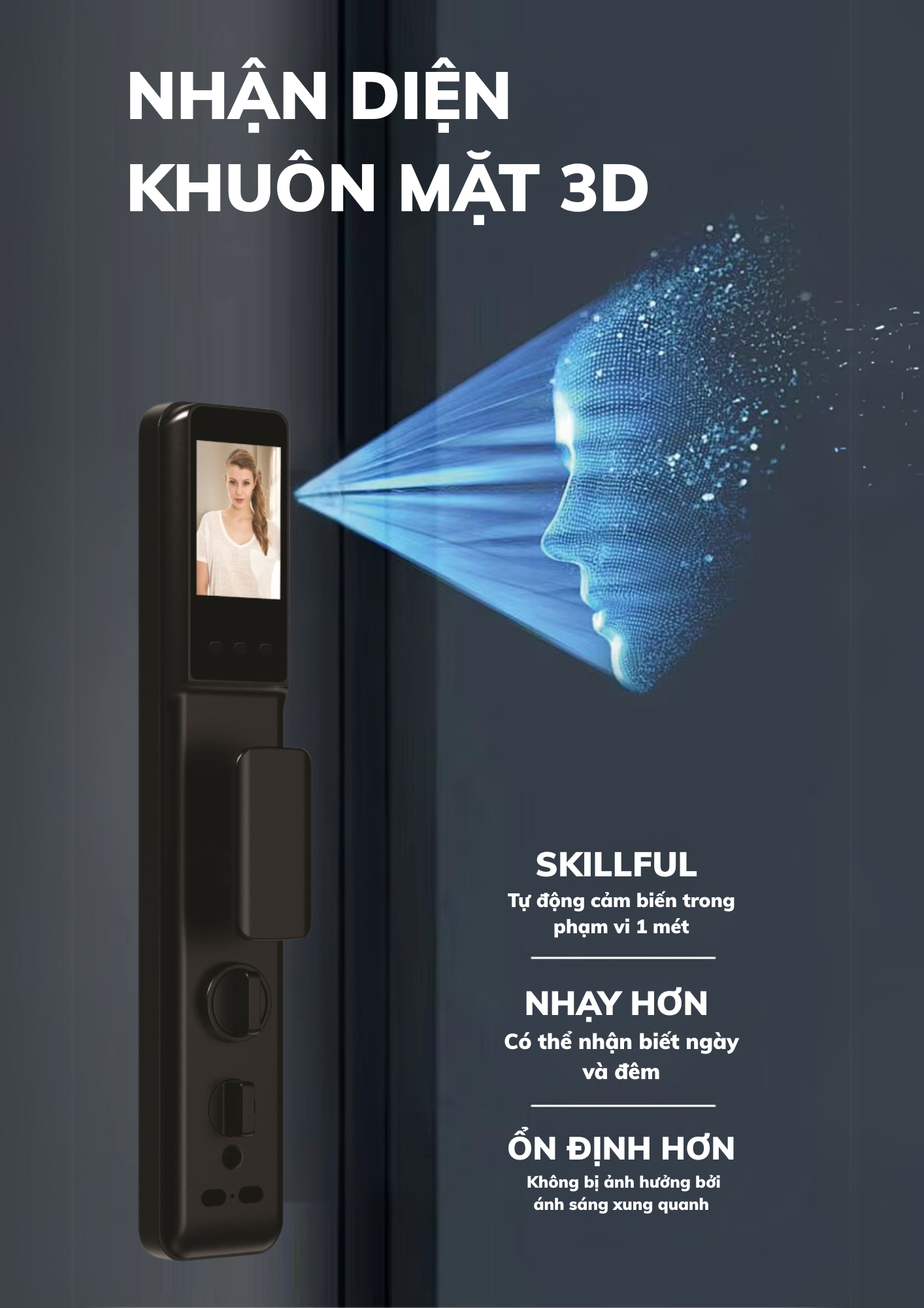 | Công nghệ mở khóa | Nhận diện khuôn mặt 3D, vân tay FPC Thụy Điển, tĩnh mạch lòng bàn tay, mã số, thẻ từ, chìa cơ chống sao chép, App Tuya (Wifi) |