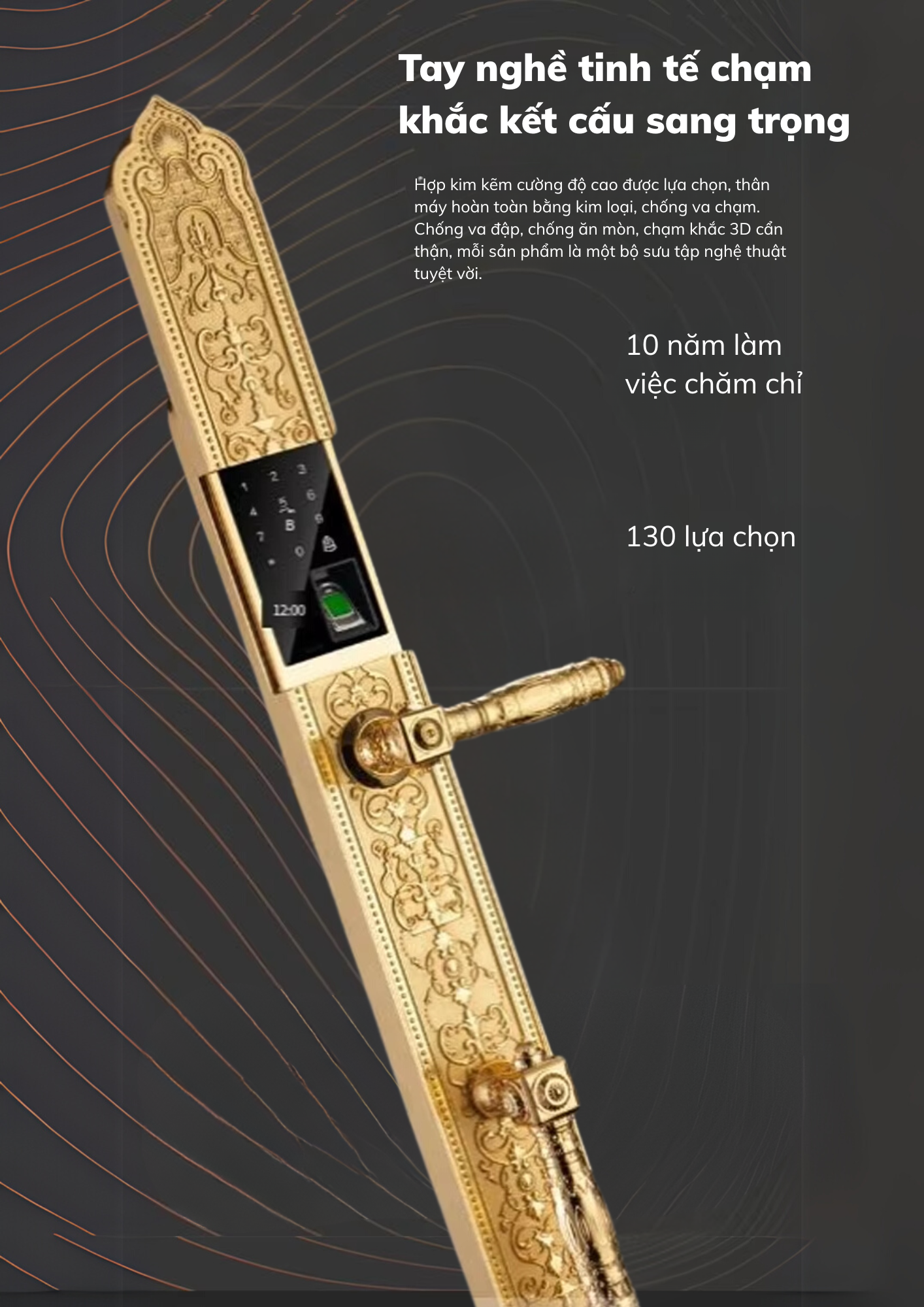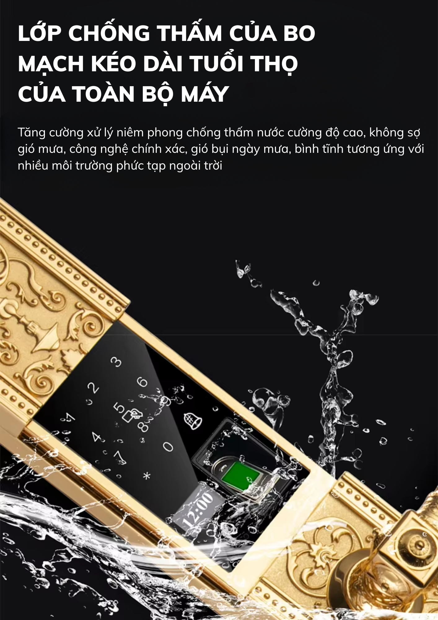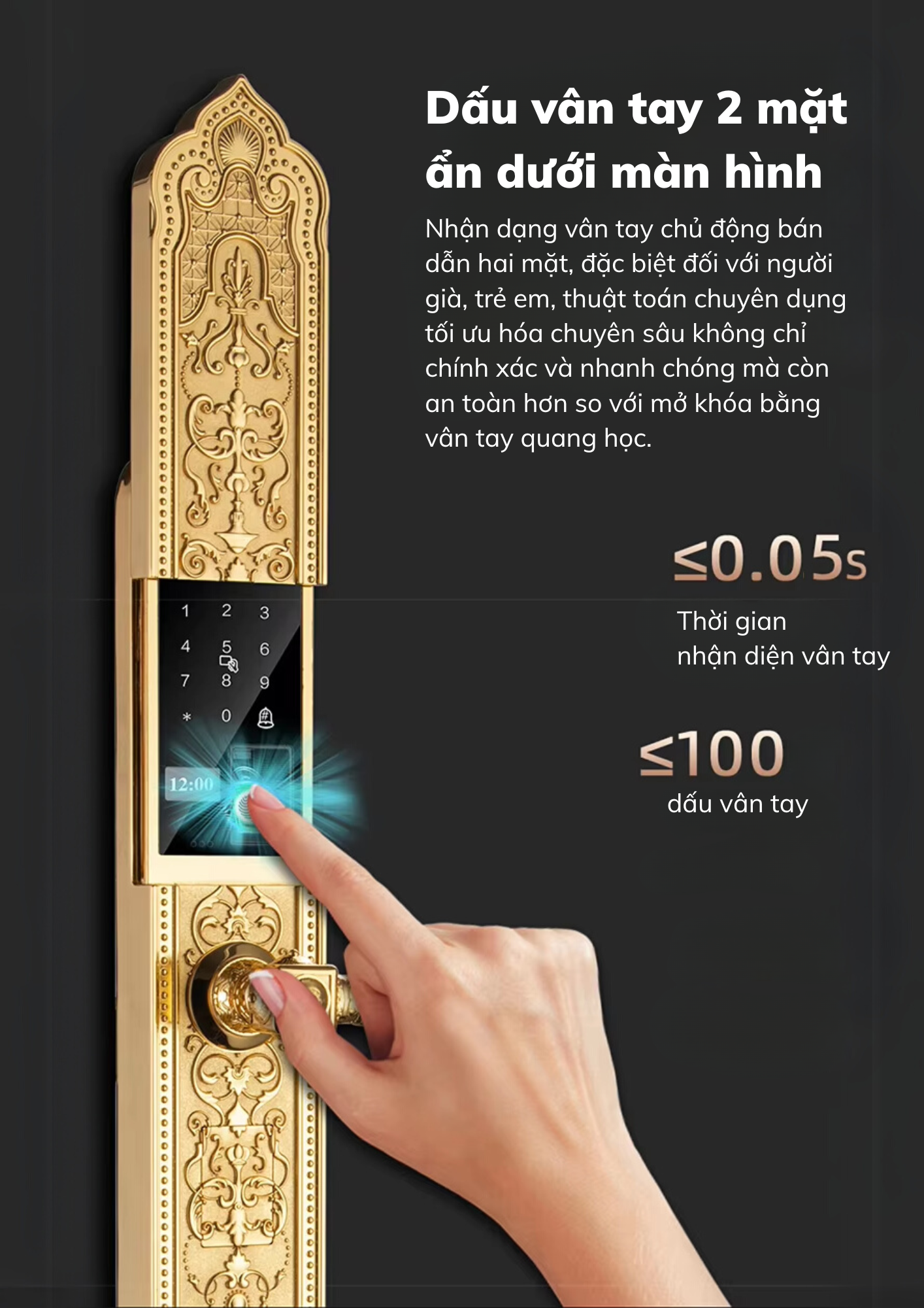 | Công nghệ mở khóa | Nhận diện khuôn mặt 3D, vân tay FPC Thụy Điển, mã số, thẻ từ, chìa cơ chống sao chép, App Tuya (Wifi) |